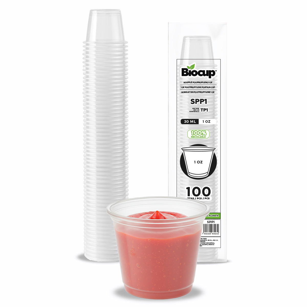 Este pequeño vaso transparente y resistente te garantiza una amplia gama de usos; Ideal para albergar condimentos, aderezos de ensalada, salsas, preparación de comidas y degustaciones. Está hecho de polipropileno.