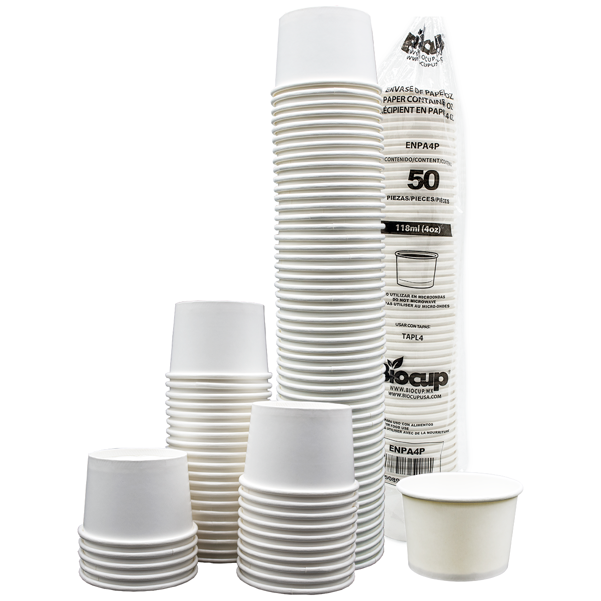 Biocup Paquetes de Envases de papel de 4 oz Sin tapa – 50 pz Blanco