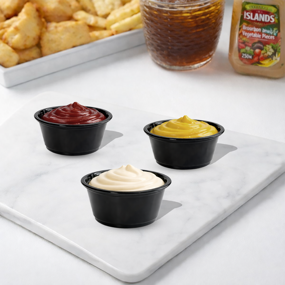 Versatilidad Total: El tamaño ideal de 2 oz es perfecto para porciones exactas de salsas, aderezos, dips, mantequillas, toppings o muestras de productos.