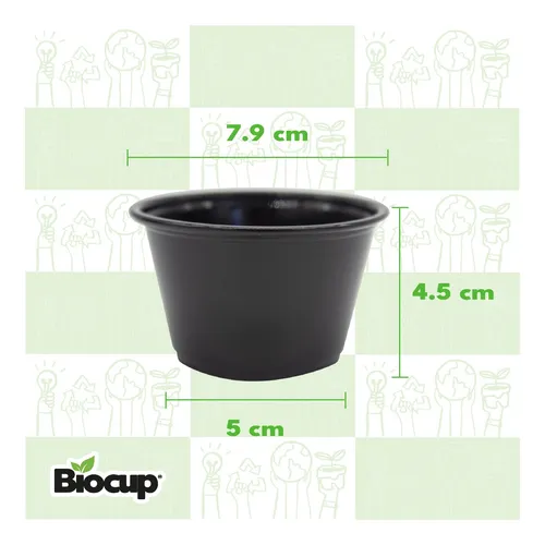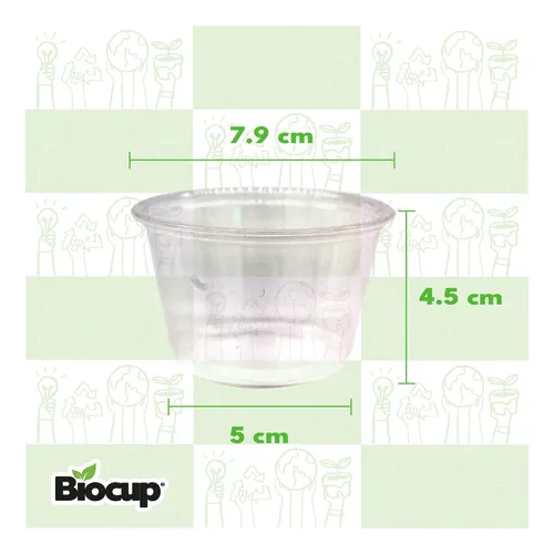 Cada vaso tiene una capacidad de 4 oz (120 ml), con dimensiones diseñadas para facilitar su uso: 7.9 cm de diámetro superior, 5 cm de base y 4.5 cm de altura.
