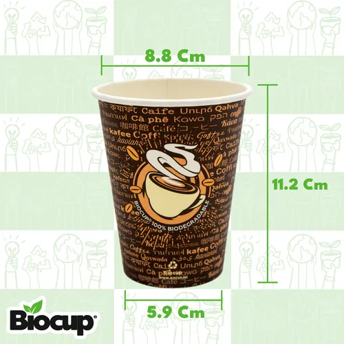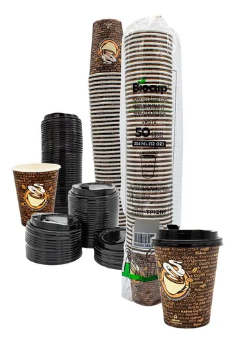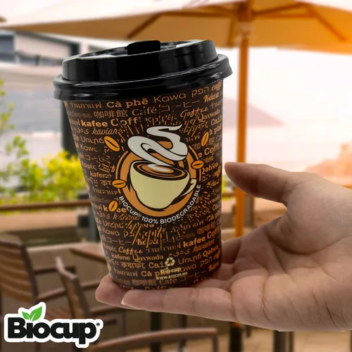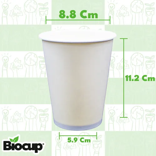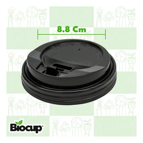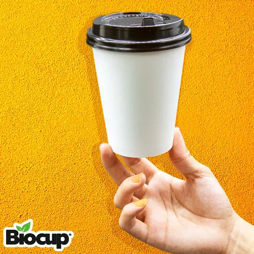 Vaso Reciclable Biocup 12 oz CON TAPA es ideal para tus bebidas calientes (50 Juegos).
