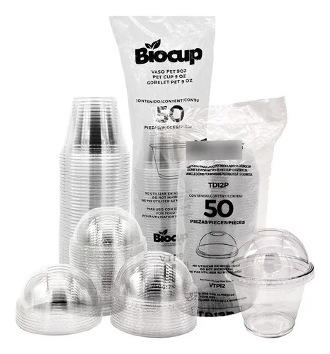 Paquete Vaso Pet 9 Oz CON TAPA DOMO es ideal para servir y disfrutar tus bebidas frías (50 Juegos)