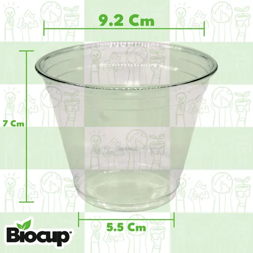 Nuestros vasos PET son resistentes y te garantizan albergar tus bebidas o productos favoritos fríos o al tiempo, sin accidentes. Está hecho de plástico PET por lo que es reciclable.